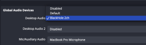 - Przechodzimy do ustawień i zakładki Audio i wybieramy Black Hole 2CH: